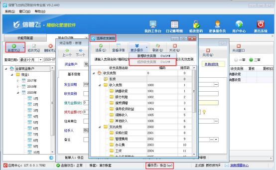 信管飛出納記賬軟件支持維護自己的收支類別項目,軟件支持分配多個操作員登錄使用,為避免操作員登錄使用修改收支類別,可設置操作員沒有修改收支類別的權限,本文以“信管飛出納記賬軟件專業版”為例,示范下如何設置操作員不能修改收支類別。 使用系統管理員賬號登錄軟件,在“系統管理”界面點擊“操作員及授權”,進入操作員管理及授權界面,選擇操作員“張亞”,功能模塊權限選擇“基礎資料”,基礎資料對應的“收支類別維護”權限中取消勾選修改權限,然后保存設置,如下圖所示:
