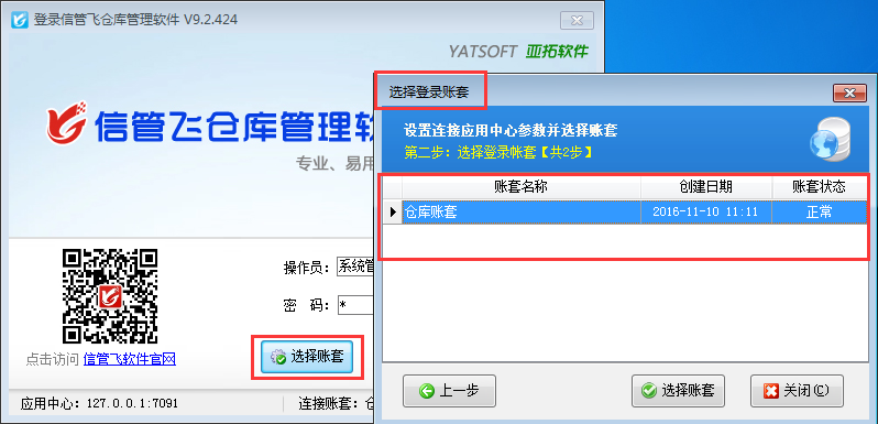 信管飛RMS、信管飛倉庫管理軟件、信管飛送貨單軟件、信管飛出納記賬軟件、信管飛票據打印軟件等軟件都含有賬套管理功能,在應用中心內支持建立多個賬套,已使用的帳套如果不再繼續使用,可以停用帳套,停用帳套后,客戶端程序登錄時將無法再連接該帳套。本文我們以信管飛倉庫管理軟件為例演示一下如何停用帳套。 應用中心(紅色圖標)程序運行后會在電腦桌面的右下角顯示,雙擊即可打開應用中心主界面,點擊“帳套管理”,如下圖所示,帳套列表一共有兩個帳套啟用,現在我們對第二個帳套“演示賬套0306”進行停用。選擇帳套后,點擊“修改”按鈕,系統彈出修