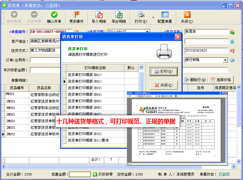 紅管家送貨單軟件經典版下載地址: 下載送貨單打印軟件