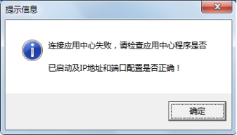 在登錄窗口,點“登錄”按鈕,即可登錄軟件。如果主機電腦沒有運行應用中心程序或者主機電腦的IP地址變了,軟件會彈出如下提示信息:
