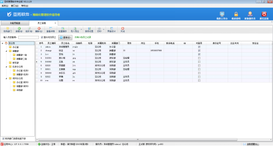 亞拓管理軟件、紅管家倉庫管理軟件、紅管家票據打印軟件、紅管家財務出納記賬系統、紅管家送貨單軟件都支持對公司員工信息的管理。員工信息管理實現員工資料的維護,可對員工顯示順序進行設置,軟件都支持通過Excel文件導入員工資料。下面我們以亞拓管理軟件為例介紹下在軟件中如何管理員工信息。