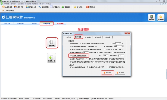 在功能導航窗點擊“系統管理”—》“系統參數”—》“基本設置”,在基本設置界面,將選項“送貨單列表顯示明細欄”打勾選中,保存即可,如下圖所示。