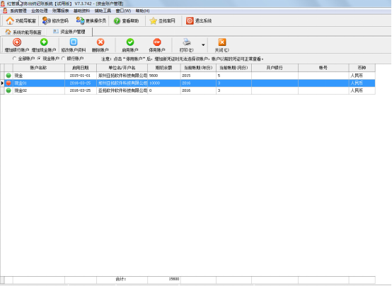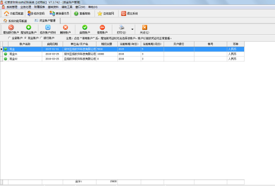 點擊主窗口菜單“基礎資料”—》“資金帳戶管理” 菜單項或者點擊功能導航窗中的“資金帳戶管理”,系統打開“資金帳戶管理”窗口,如下圖1所示: