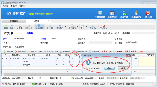 亞拓軟件開(kāi)發(fā)的亞拓管理軟件、紅管家倉(cāng)庫(kù)管理軟件、紅管家送貨單軟件等在開(kāi)單據(jù)時(shí)如果商品單價(jià)為0,系統(tǒng)會(huì)彈出提示信息,是否需要繼續(xù)保存,如下圖一所示,這樣以免用戶(hù)在添加商品明細(xì)時(shí)忘了填寫(xiě)單價(jià),好及時(shí)錄入,但是有一部分用戶(hù)在開(kāi)單據(jù)時(shí)只需要填寫(xiě)商品數(shù)量,不需要填寫(xiě)單價(jià),那么該怎么設(shè)置系統(tǒng)才能不彈出以下提示信息呢?本篇文章以紅管家送貨單軟件為例介紹一下如何設(shè)置送貨單開(kāi)單時(shí)商品單價(jià)為0系統(tǒng)不彈出提示信息?