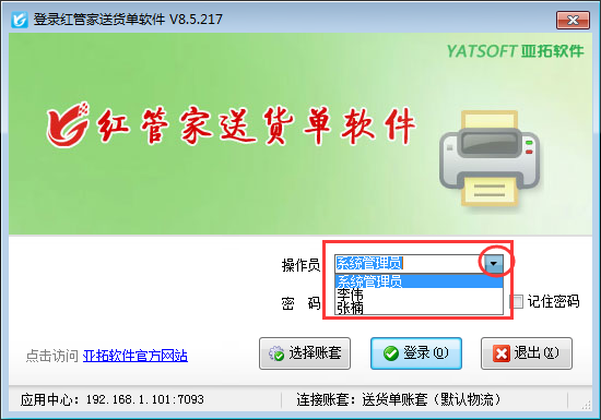 以紅管家送貨單為例,我們示范下如何減少可登錄軟件的操作員。軟件登錄界面的可登錄人員如下圖1所示: