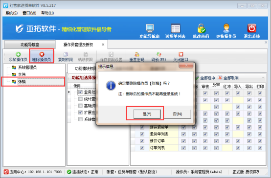 亞拓軟件旗下的亞拓管理軟件、紅管家送貨單軟件、紅管家出納記賬軟件等支持在軟件中設(shè)置多個操作員進行登錄軟件。許多用戶存在業(yè)務(wù)員離職后,其操作員權(quán)限仍存在,可以繼續(xù)使用其姓名進行開單操作。為了避免選擇離職員工登錄軟件開單,軟件支持可以刪除已離職或者不允許再登錄軟件的操作員的登錄權(quán)限。