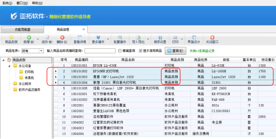 亞拓管理軟件、紅管家倉庫管理軟件和紅管家送貨單軟件都包括對商品信息的管理。商品信息集中管理和維護商品資料,可以對商品信息分類管理。在軟件中如何快速批量修改商品類別呢?下面我們以亞拓管理軟件專業版為例詳細介紹下如何批量修改商品類別。