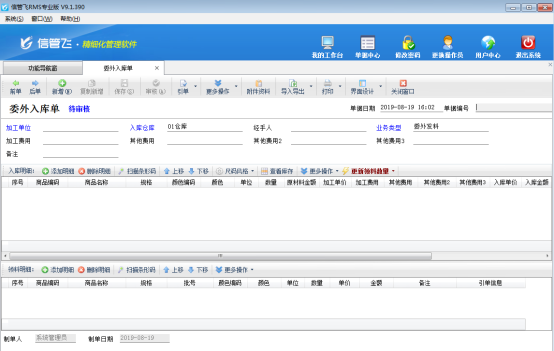 (4)當委外加工完成后,就可以開“委外入庫單”進行入庫操作(進入生產倉庫,如果直接是成品也可以進入銷售倉庫)。