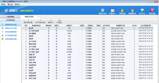 信管飛倉庫管理軟件、信管飛RMS、信管飛送貨單軟件都支持對單據編號規則進行設置,下面我們以信管飛倉庫管理軟件為例來介紹一下具體的操作步驟。