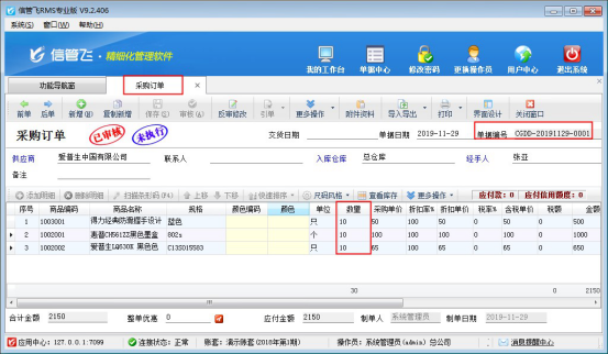 歡迎下載試用可控制采購數(shù)量不可超過訂單數(shù)量的進(jìn)銷存軟件:信管飛RMS軟件