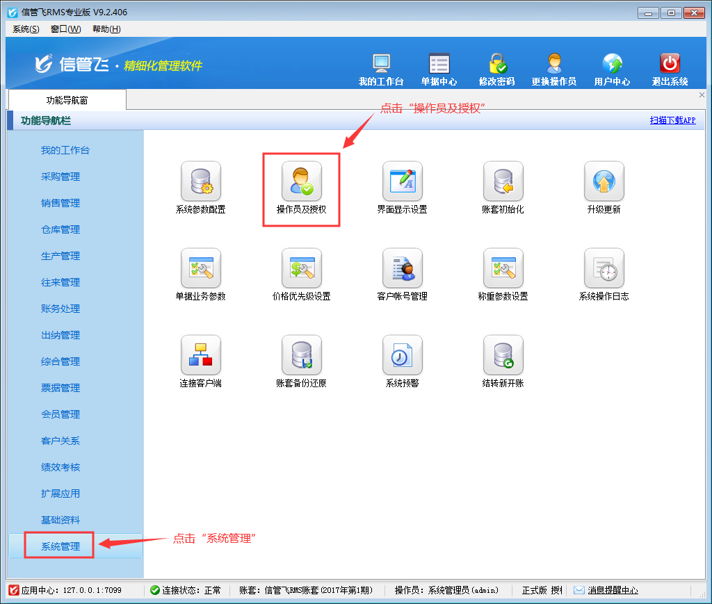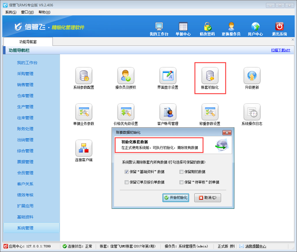 執(zhí)行賬套初始化操作后,會(huì)刪除賬套內(nèi)相應(yīng)的數(shù)據(jù),因此務(wù)必提前做好備份,謹(jǐn)慎操作!為了避免操作員誤操作,導(dǎo)致數(shù)據(jù)丟失,軟件內(nèi)支持設(shè)置操作員不可進(jìn)行賬套初始化操作,下面以信管飛RMS為例來(lái)演示一下具體的操作步驟。
