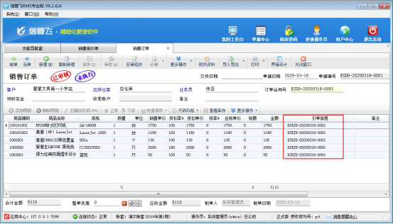 參數(shù)設置完成,返回至銷售訂單開單界面,點擊引單--引用銷售報價單,可看到之前已引用過的銷售報價單信息,可重復引用,如下圖所示: