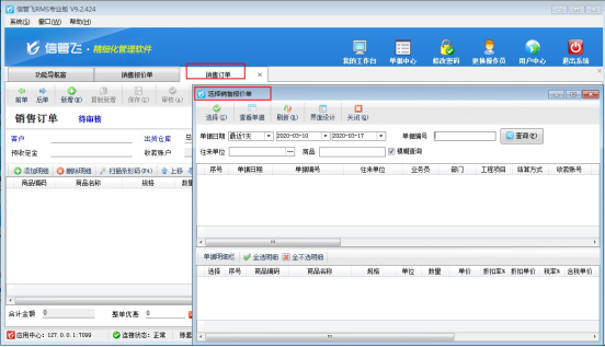以“信管飛RMS專業(yè)版”為例,直接開銷售報價單并被銷售訂單引用,再次開銷售訂單引用銷售報價單會獲取不到銷售報價單信息,如下圖所示: