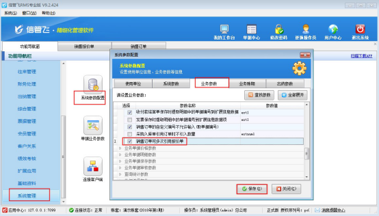 需要重復引用需設置下參數(shù)“銷售訂單可多次引用報價單”,在功能導航窗點擊“系統(tǒng)管理”—》“系統(tǒng)參數(shù)配置”,在業(yè)務參數(shù)中把參數(shù)“銷售訂單可多次引用報價單”勾選保存配置,如下圖所示: