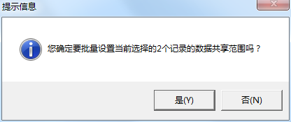 批量選擇銷售機會信息后,點擊工具欄的“更多操作”—》“設(shè)置共享范圍”按鈕,會提示“您確定要批量設(shè)置當(dāng)前選擇的X個記錄的數(shù)據(jù)共享范圍嗎?”,點擊“是”進(jìn)行批量設(shè)置共享范圍即可。如下圖所示: