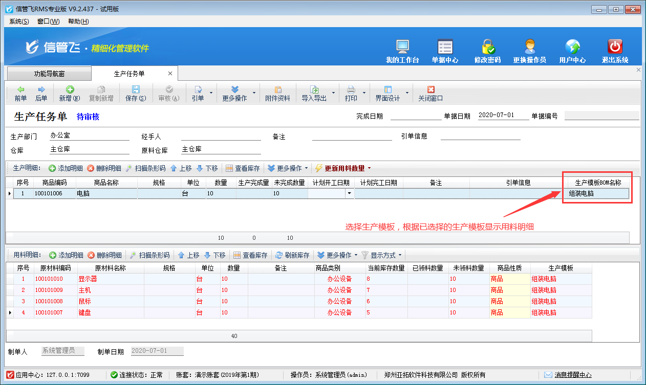 生產(chǎn)管理模塊是信管飛RMS(進銷存管理軟件)的擴展模塊,如需使用,是需要另外購買的,可聯(lián)系在線客服進行咨詢試用。