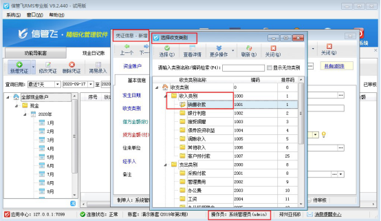 信管飛RMS標(biāo)準(zhǔn)版和專業(yè)版支持出納模塊,可登記現(xiàn)金和銀行日記賬,日記賬登記時(shí)需要選擇收支類別,如果不想操作員看到所有的出納憑證,可以設(shè)置操作員的收支類別權(quán)限。本文以“信管飛RMS專業(yè)版”為例進(jìn)行示范。