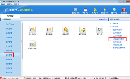提示:出納憑證明細查詢功能是V9.1.369版本增加的功能,如需要使用此功能,需升級到最新版。