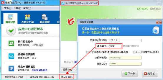 應用中心重啟后登錄客戶端程序,點擊“選擇帳套”,修改端口號和應用中心程序一致。下一步選擇帳套登錄,如下圖所示: