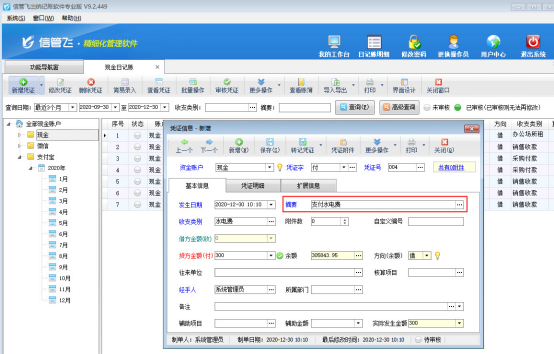 信管飛出納記賬軟件登記日記賬憑證時可以錄入憑證摘要信息,憑證摘要是必填項,憑證摘要可以概要的說明憑證內容,方便以后查找。我們以信管飛出納記賬軟件專業版為例,介紹一下出納記賬軟件如何按摘要統計?