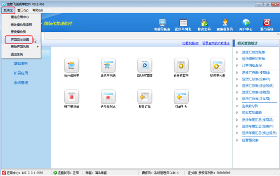 登錄軟件界面,在左上角的“系統”按鈕下選擇“界面顯示設置”可進入界面顯示設置窗口。如下圖2所示: