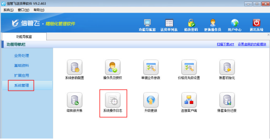 在功能導航窗點“系統管理”—》“系統操作日志”即可進入系統操作日志界面,如下圖2所示: