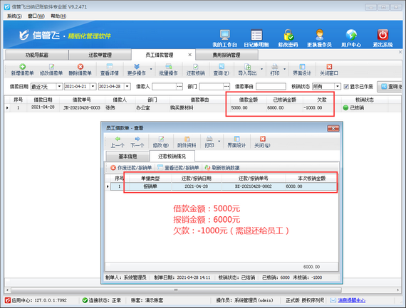 歡迎免費(fèi)下載試用這款支持員工借款及還款管理的出納記賬軟件:信管飛出納記賬軟件。