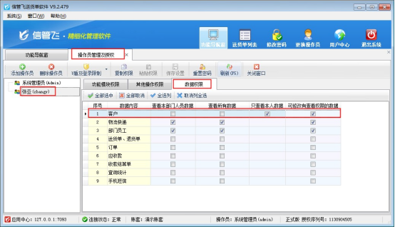 信管飛送貨單軟件、信管飛RMS軟件等都支持增加可登錄的操作員以及設(shè)置操作員的權(quán)限,有客戶需要操作員僅能對自己的客戶進行開單操作,無其他操作權(quán)限,這種應(yīng)該如何控制?文本以“信管飛送貨單軟件”為例進行示范下。