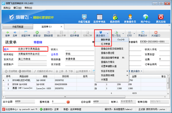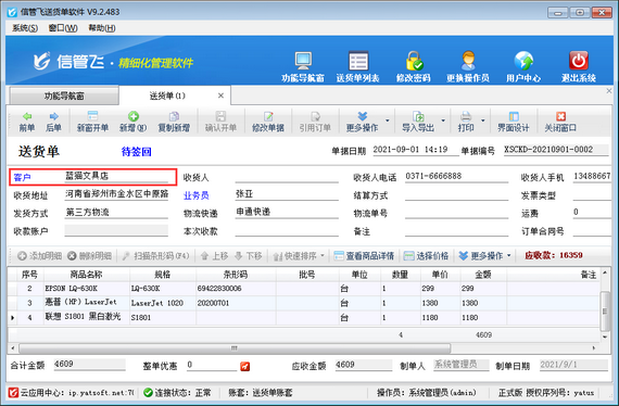 信管飛送貨單軟件是一款針對中小型企業(yè)開發(fā)的集送貨管理、應收款管理等為一體的送貨單打印軟件。使用軟件時如果送貨單確認開單后,發(fā)現(xiàn)客戶名稱有誤,系統(tǒng)不支持直接修改,那么該如何處理呢?