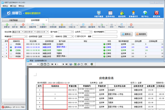 設置完成后,重新進行打印預覽,即可正常打印應收款結銷狀態,如下圖所示。