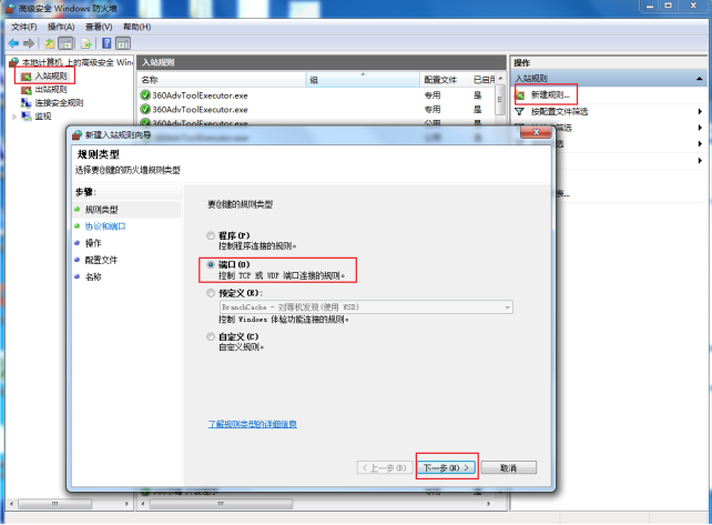 打開(kāi)“控制面板”→“系統(tǒng)和安全”→“Windows防火墻”→“高級(jí)設(shè)置”→“入站規(guī)則”→“新建規(guī)則”→選擇“端口”→點(diǎn)擊“下一步”→“輸入特定本地端口”→“下一步”→“下一步”→“輸入名稱(chēng)”,然后點(diǎn)擊確定按鈕完成操作。