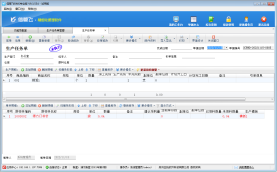 生產(chǎn)管理模塊是信管飛RMS軟件的擴(kuò)展模塊,如需使用,是需要另外購(gòu)買(mǎi)的,可聯(lián)系在線客服進(jìn)行咨詢?cè)囉谩?/P>