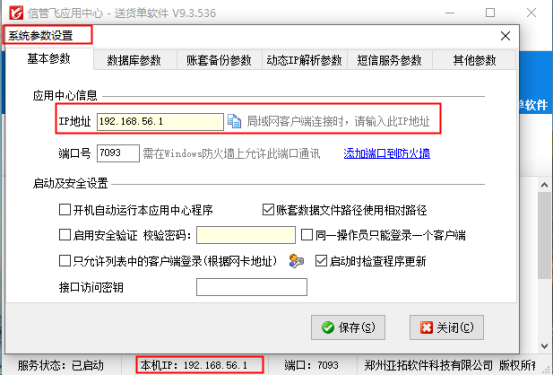 主機電腦安裝應(yīng)用中心程序完成后,在打開界面可查看本機ip地址,如下圖所示: