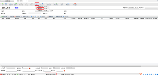 系統(tǒng)管理員登錄,可以看到開采購入庫單界面可以正常引用銷售訂單開單,用操作員賬號張亞登錄,采購入庫單則無法引單銷售訂單,如圖所示: