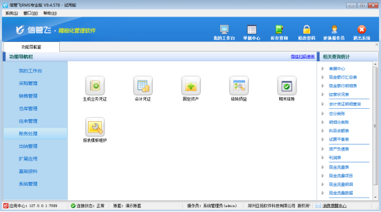 參數(shù)設(shè)置完成后,退出重新登錄軟件,此時(shí)財(cái)務(wù)處理一般費(fèi)用單、其他收入單、調(diào)賬業(yè)務(wù)等功能已顯示。