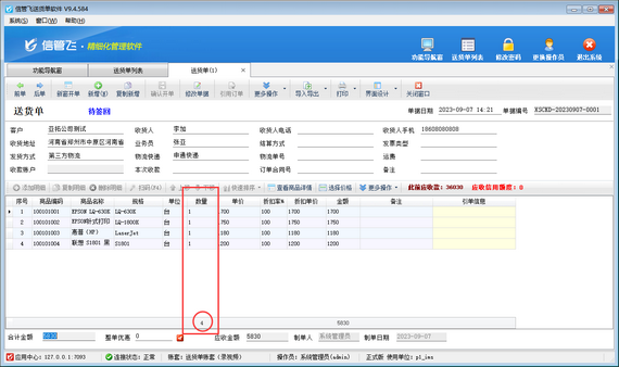 最近有用戶在使用送貨單軟件時(shí),反饋存在以下問(wèn)題,在填開(kāi)送貨單時(shí),有錄入商品數(shù)量,但是在送貨單列表不顯示送貨單“總數(shù)量”數(shù)據(jù),如下圖所示。