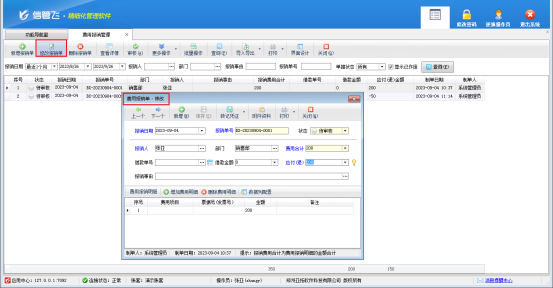 設置完成之后,退出軟件重新用操作員賬號登錄,此時報銷單可修改成功。