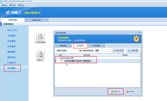 出現此問題的原因是:啟用了“出納憑證摘要只能選擇不能隨意輸入”參數導致的。解決方法如下:在功能導航窗點擊“系統管理”—》“系統參數設置”—》“業務參數”,打開業務參數界面,找到參數“出納憑證摘要只能選擇不能隨意輸入”,并勾選取消,如下圖所示。