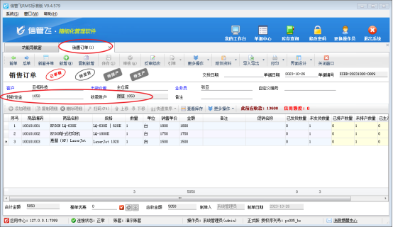 在功能導(dǎo)航窗點擊“銷售管理”—》“銷售訂單”,進入銷售訂單管理界面,點擊新增按鈕,新增一個銷售訂單,錄入預(yù)收定金,如圖所示: