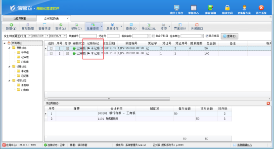 信管飛RMS專業版包含財務處理功能可用來登記會計憑證,有用戶在記賬之后需要修改憑證,已過賬狀態下無法進行修改,需要先把憑證取消記賬后才能進行反審修改,如果需要修改的已過賬憑證過多,一個一個取消記賬過于麻煩,軟件內支持在會計憑證列表批量取消記賬,本篇文章介紹下如何操作。