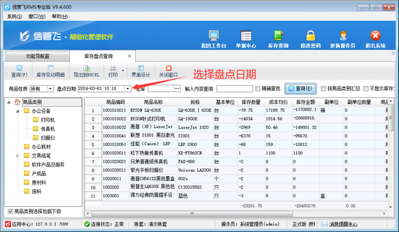 庫存盤點查詢功能則是信管飛RMS的另一大亮點。通過設定盤點日期,系統(tǒng)能夠快速生成指定日期之前的庫存情況報告,包括庫存數量、成本均價、庫存金額等詳細信息。這不僅簡化了盤點流程,提高了盤點效率,還能確保庫存數據的準確性和完整性。
