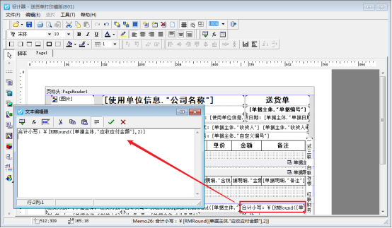 打印模板四舍五入顯示兩位,在開單界面打印下點擊“打印格式設計”,選擇打印模板,點擊“設計格式”進入模板設計器,金額設置四舍五入需要調用RMRound函數(shù),打開金額文本框,復制取整調用數(shù)據(jù)項:[RMRound([單據(jù)主體."應收應付金額"],2)],然后確認保存,如下圖: