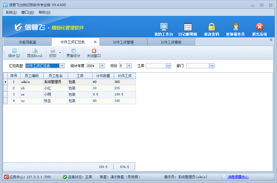 統(tǒng)計與分析:支持統(tǒng)計員工的計件工資數(shù)據(jù),并生成各種報表和分析圖表。這樣,企業(yè)就能夠清晰地了解員工的工資變化趨勢,為后續(xù)的薪酬調(diào)整提供有力支持。