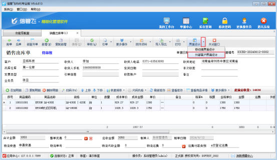 以訂單推送消息,不允許查看訂單金額和單價為例,在單據開單界面點擊“界面設計”旁邊小倒三角,選擇外部客戶界面設計,如圖所示: