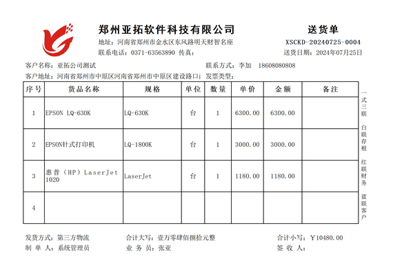 告別手寫單據(jù)的繁瑣與不便,信管飛送貨單軟件支持一鍵打印功能。用戶只需輕點鼠標,即可將生成的送貨單直接發(fā)送至連接的打印機進行打印。這不僅大大提高了工作效率,還減少了因手寫錯誤而導(dǎo)致的退貨或重開單據(jù)的情況,為企業(yè)節(jié)省了寶貴的時間和成本。