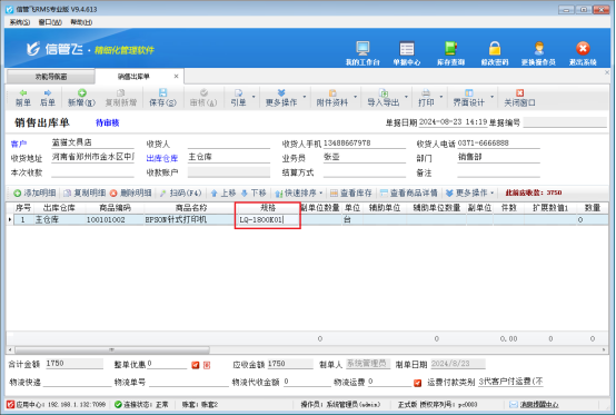 參數保存后,在功能導航窗點擊“銷售管理”—》“銷售出庫單”,新增銷售單,商品規格信息可以正常修改。如圖所示: