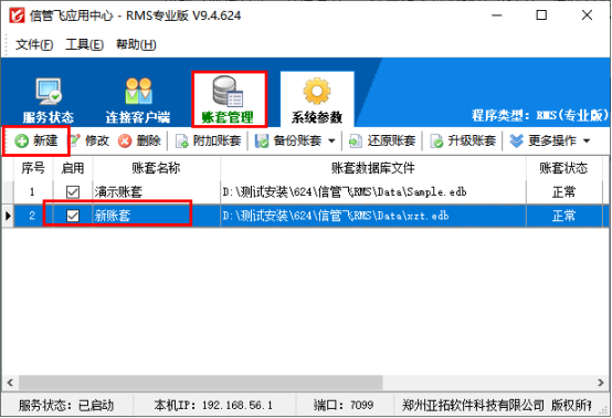 打開紅色應(yīng)用中心程序,在賬套管理中點擊“新建”新增新賬套,如下圖所示: