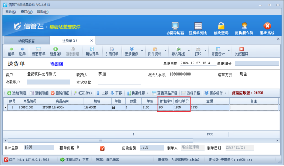 檢查折扣率,折扣率等于100時(shí),單價(jià)=折扣單價(jià),金額=單價(jià)*數(shù)量;折扣率不等于100時(shí),金額=折扣單價(jià)*數(shù)量。