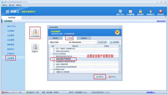 該軟件支持設置多個操作員,每個操作員僅能查看到自己負責的資金賬戶,有效解決了多人同時操作時的賬戶混淆問題。在系統參數配置界面,只需簡單勾選“啟用資金賬戶權限控制”參數,即可開啟這一功能。