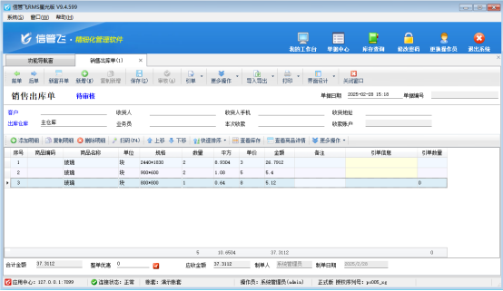 信管飛RMS(進銷存管理軟件)、信管飛送貨單軟件、信管飛倉庫管理軟件等開單默認是根據單價*數量自動計算得出金額,如有其他的數據計算需求,軟件也支持自定義計算公式,本篇文章以銷售出庫單為例介紹一下如何自定義平方的計算公式?